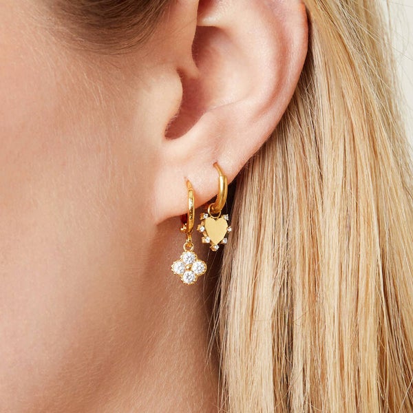 Schattige vergulde hartvormige oorbellen met kleine zirkonia steentjes.