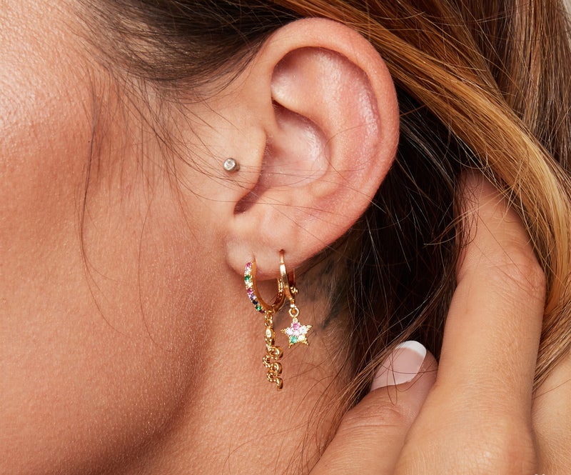 Oorbellen met een kleine sterrenbedeltje en sprankelende steentjes.