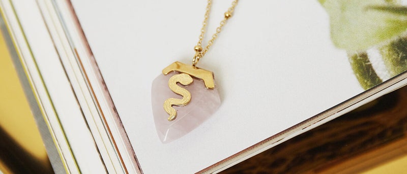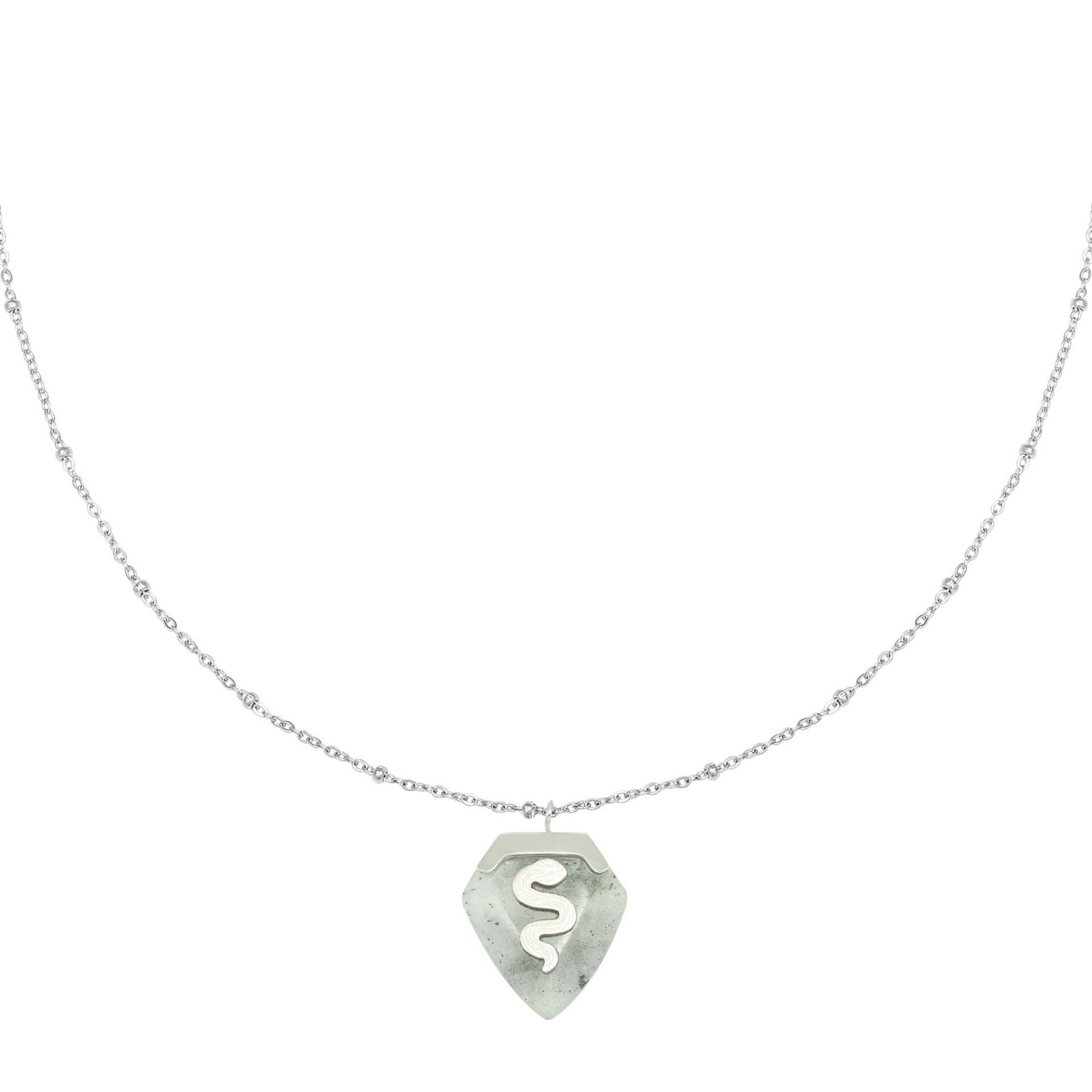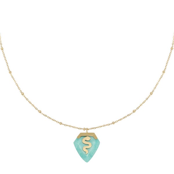 Ketting met een hanger van natuursteen en een slang. Verkrijgbaar in verschillende kleuren.